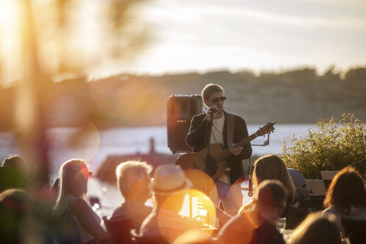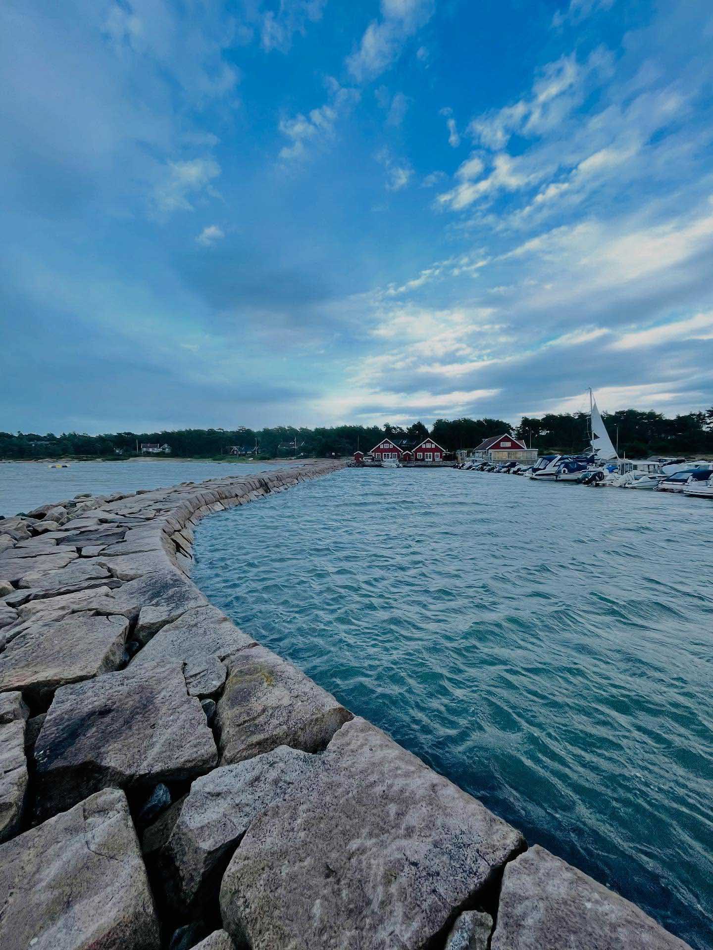 Nyt god mat og drikke med flott utsikt over havnen. Området byr på gode bademuligheter rett i nærheten, perfekt for en pause i land eller en hyggelig kveld i idylliske omgivelser.